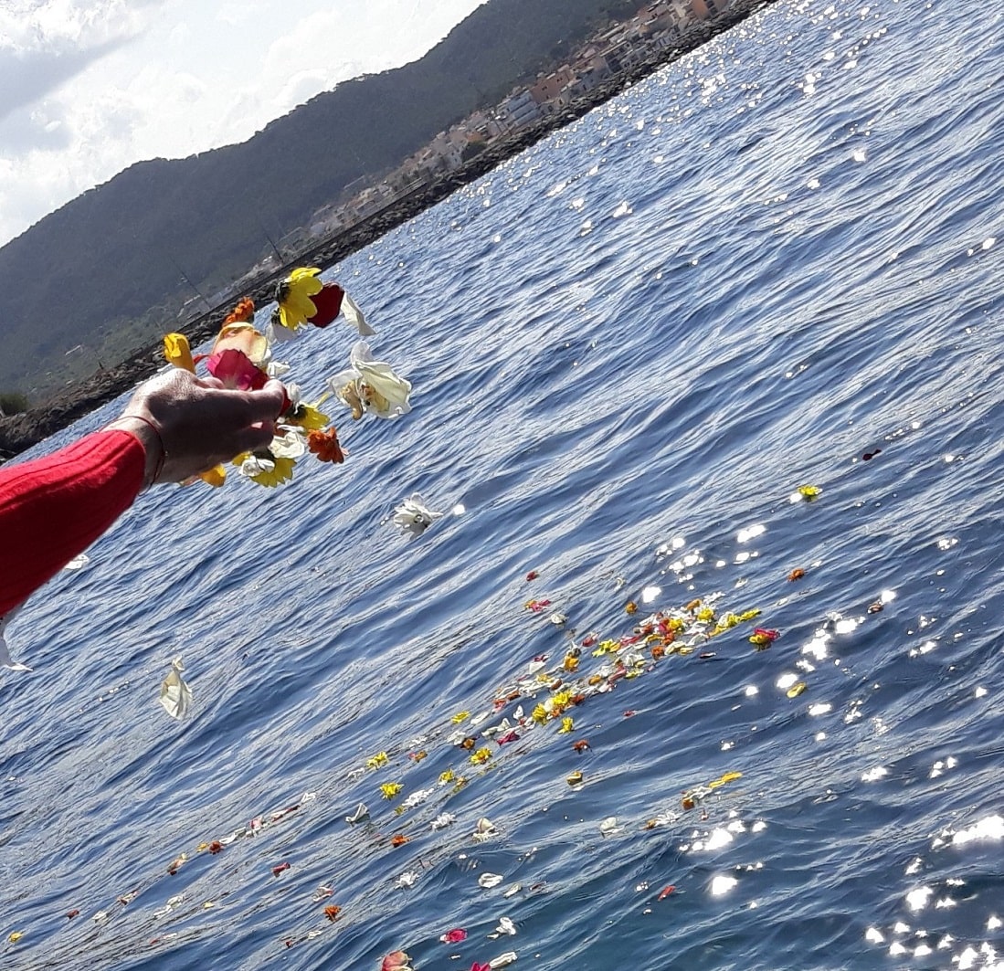 Zunächst einmal vielen Dank für Deine Unterstützung an diesem traurigen Tag. Es war, so glauben wir, alles in Alfs Sinn und er ist jetzt an seinem “Sehnsuchtsort”. Wir sind am Abend, bevor wir zum Flughafen gefahren sind, nochmal zum Leuchtturm gegangen und wollten uns dort auf “unsere” Bank setzen und nochmal ein bisschen an Alf und unsere schönen Zeiten in Andratx denken. Und siehe da, unsere verstreuten Blumen hatten sich alle dort in der Ecke gesammelt und schwammen vor unserer Bank. Da flossen natürlich noch einige Tränen. Vielleicht hat Alf uns dort ein letztes Mal zugewinkt… Wir wünschen Dir alles Gute!